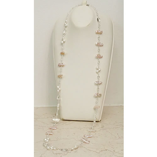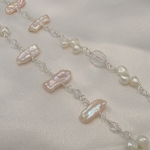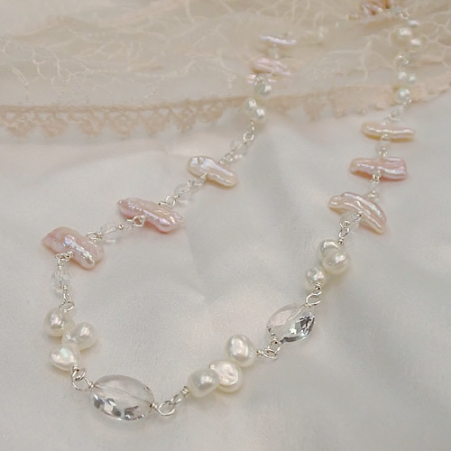 間に白い淡水ケシパールを3粒続けて入れ、動きのあるデザインにしました。
