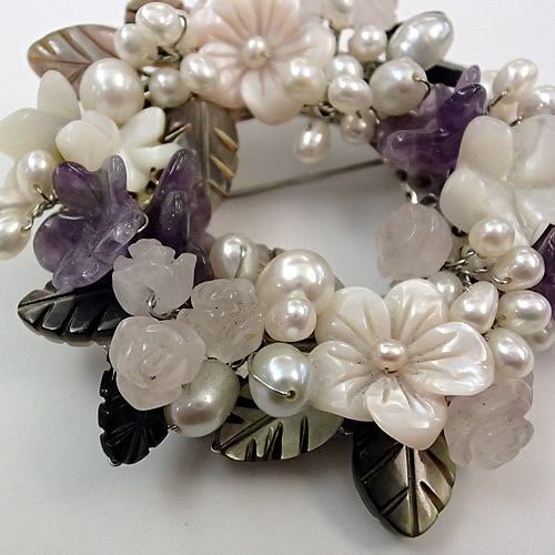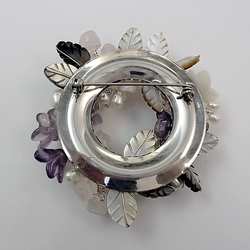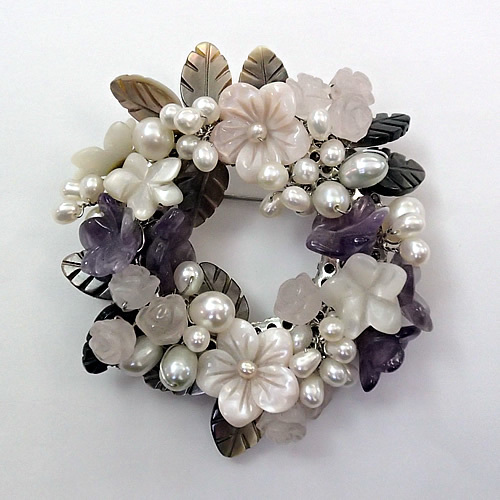 天然石ブローチ(リース型)