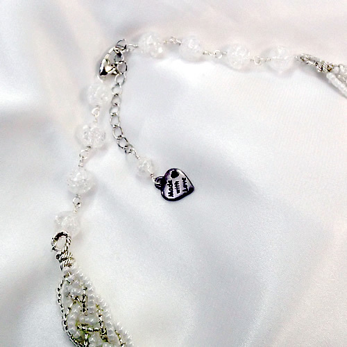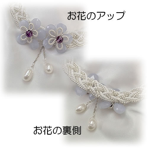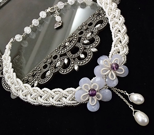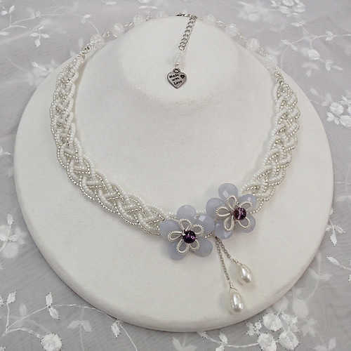 白色と銀色のビーズの四つ編みネックレスがベースになっています。