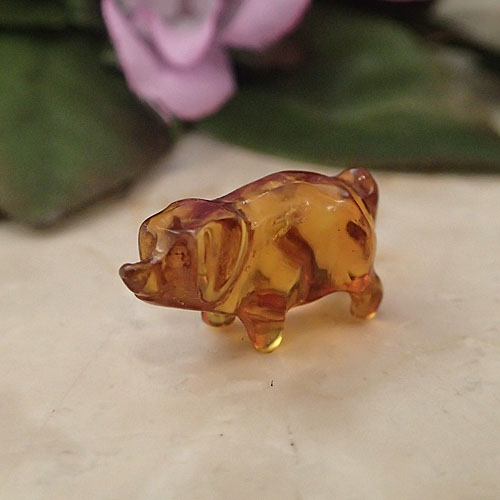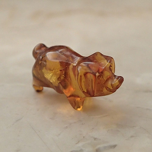 琥珀を【ブタ】に彫刻した置物です。